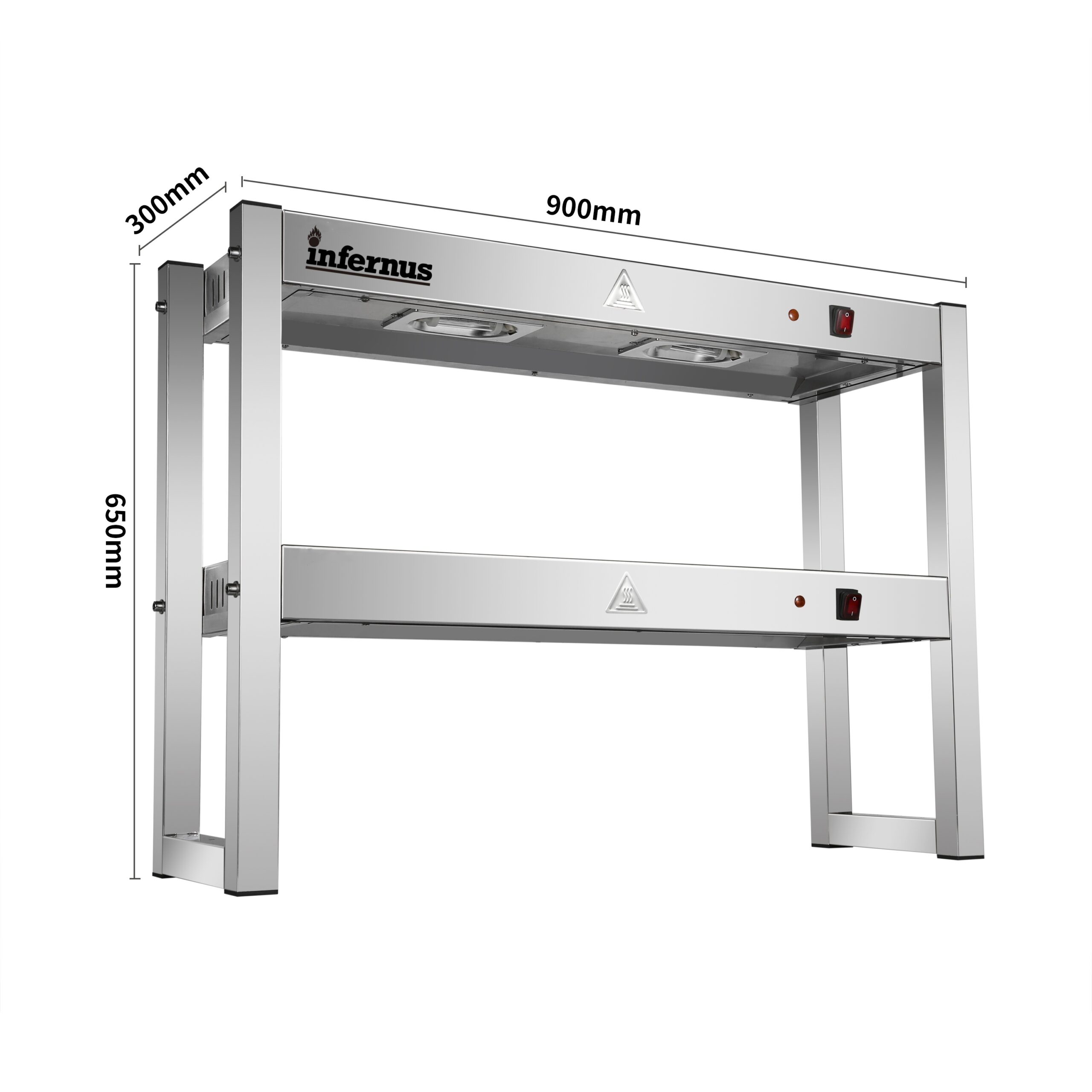 Ideal for busy restaurants, hotels, and catering operations, the dual-tier design improves workflow efficiency and ensures consistent heat distribution across both levels. Built from durable materials, this unit is suitable for continuous use in demanding food service environments.