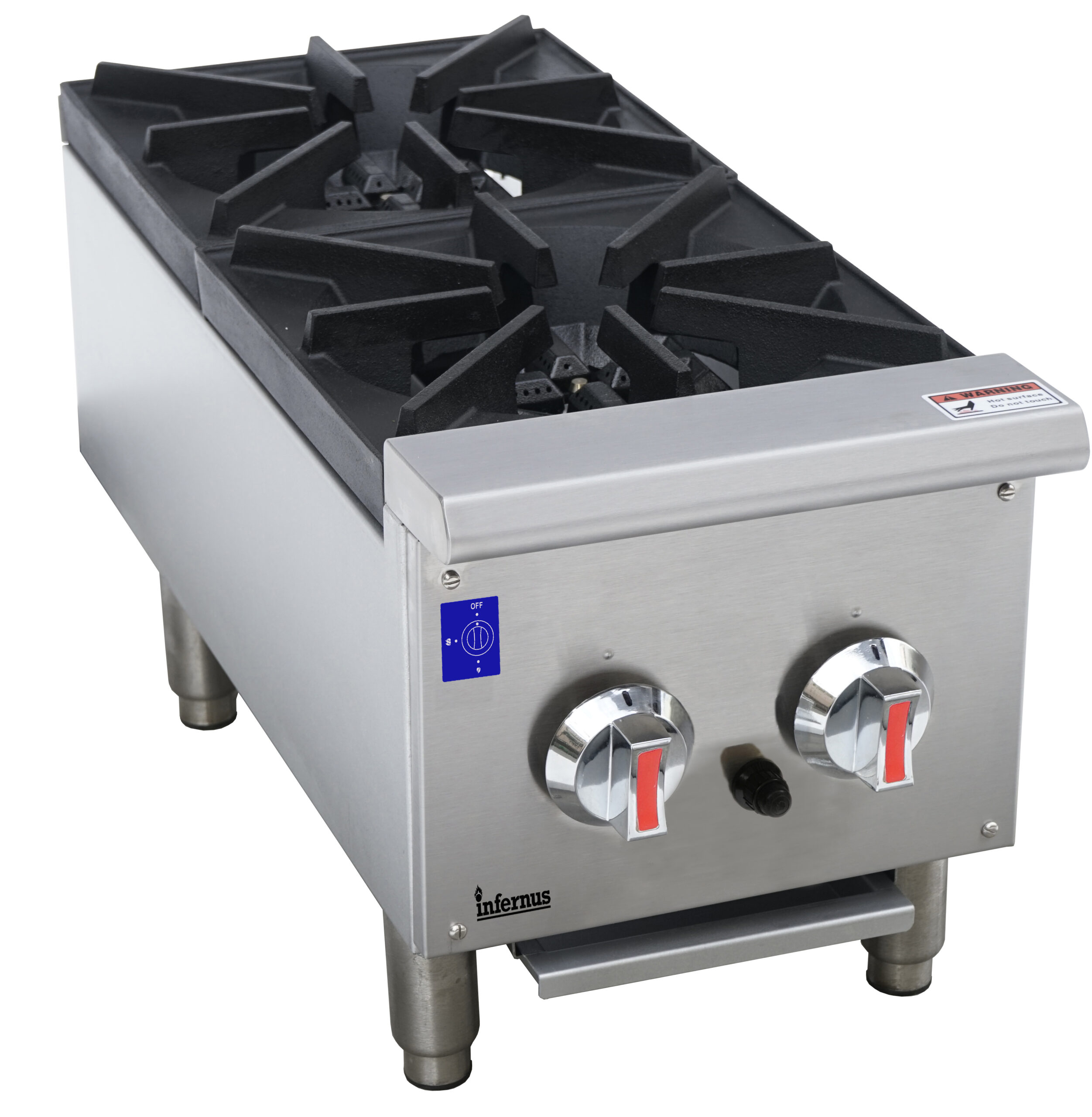 Powerful Cooking in a Compact Footprint The Infernus 2 Burner Hob Gas Hotplate Cooker (INF-GB2) is the ideal high-output solution for commercial kitchens, cafes, and mobile catering units where space is at a premium. With its slim 30cm (12-inch) width, this professional countertop hotplate provides exceptional cooking power without overwhelming your prep area, allowing for efficient multi-tasking in smaller kitchen environments.