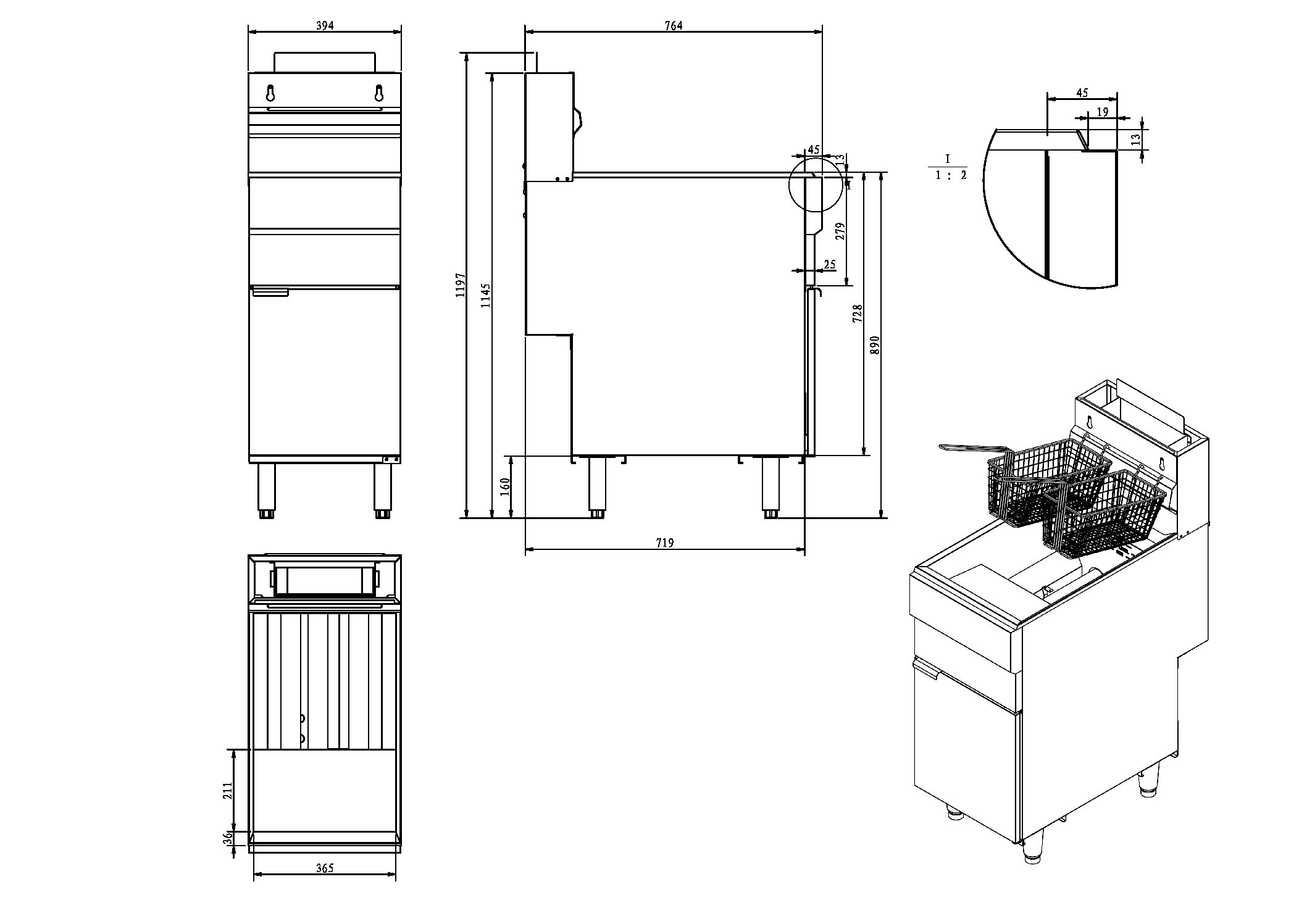 - Machine Dimensions: 394w x 764d x 1197h