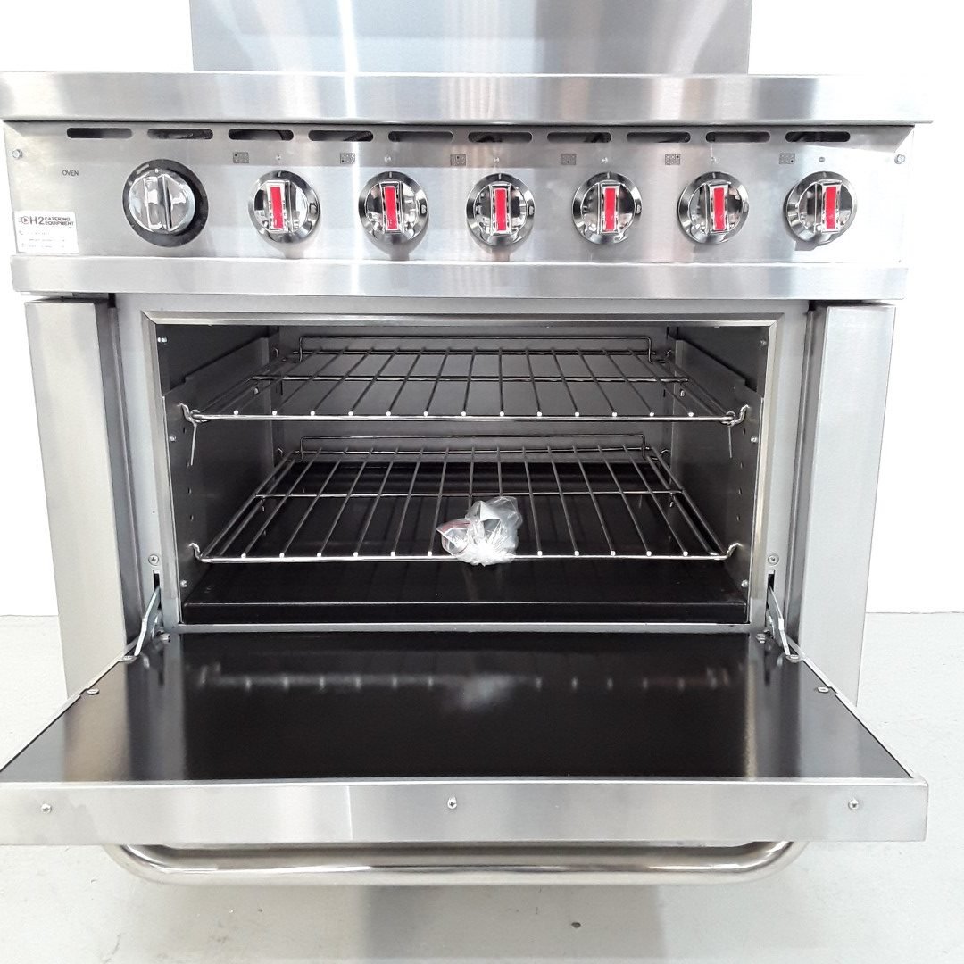 - Six open top burners, each 6kW/hr