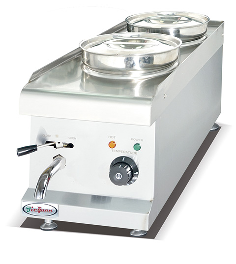 Precision Heat and Versatile Capacity Equipped with two 4-litre stainless steel round pots, this bain marie offers a practical capacity for high-volume sauce and soup service. The unit utilizes a wet heat operation, which provides a gentle and even heat distribution to prevent food from burning or drying out. With user-friendly thermostatic controls, chefs can easily manage temperature levels up to 95°C to meet strict food safety standards.