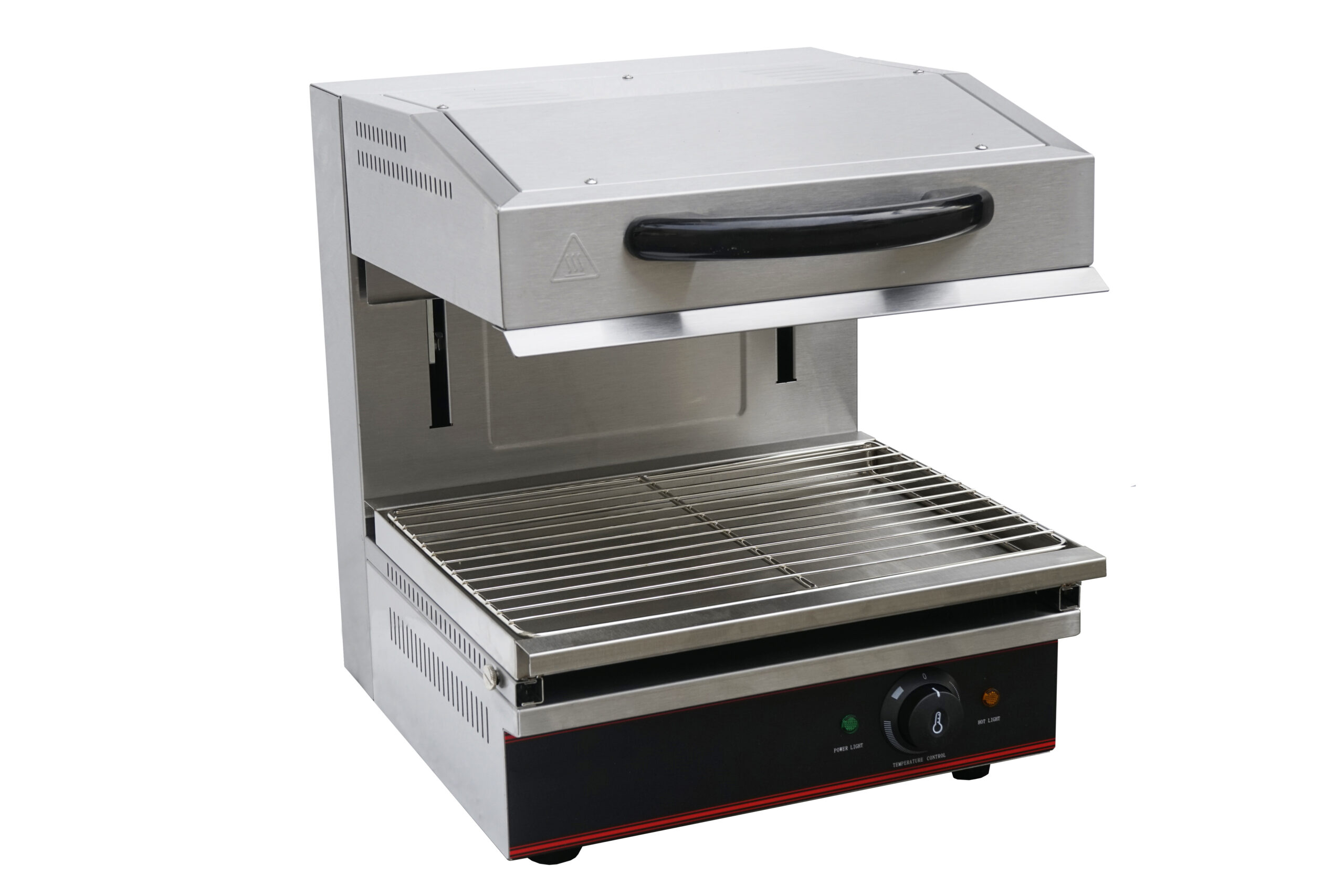Designed for ease of use and hygiene, the grill includes a removable rack, a grease drip tray, and rack supports on both sides for adjustable cooking heights. With its cool-to-touch Bakelite handle and anti-slip rubber feet, it offers both safety and stability. This space-saving model comes with a standard 13-amp plug, making it an ideal “plug-and-play” addition to any cafe, deli, or catering trailer.