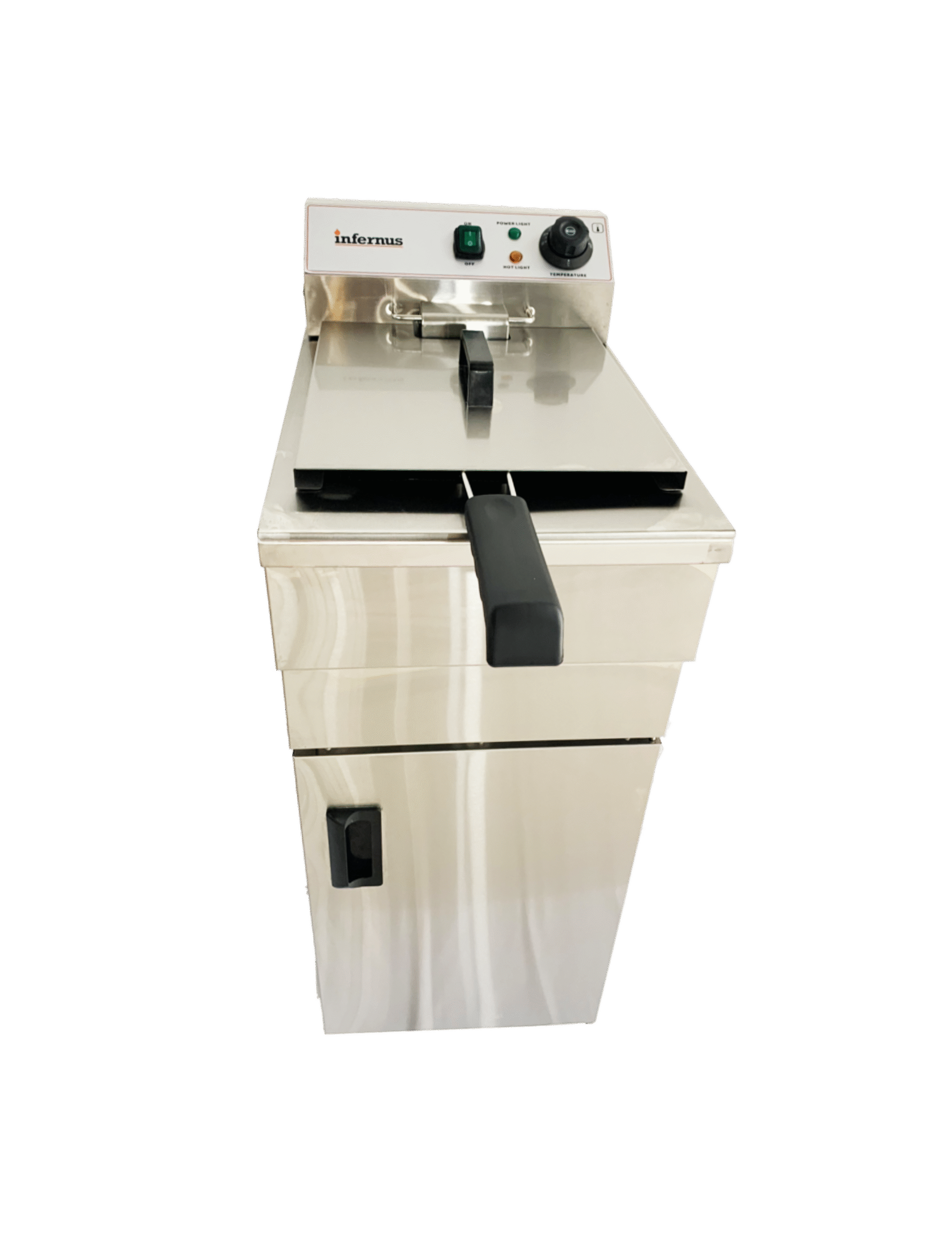 High-Efficiency Chilling for Professional Service The Infernus Free Standing Single Tank Electric Fryer (INF-161FS) is a robust and efficient 16-litre frying solution designed for professional kitchens, cafes, and mobile catering units. Engineered for consistent performance, this 3kW fryer provides rapid heat-up times and precise temperature management, ensuring your fried foods are always golden and crispy.