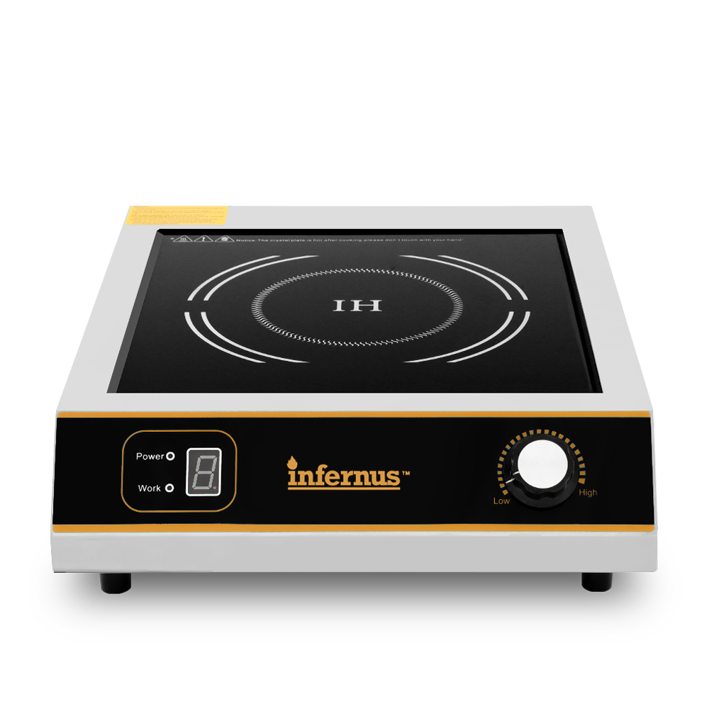 High-Speed Efficiency for Professional Kitchens The Infernus Commercial Induction Cooker (INF-IC1) is a high-performance 3000W unit designed to bring speed, precision, and energy efficiency to your food preparation. Ideal for restaurants, catering events, and buffet services, this induction hob uses advanced electromagnetic technology to transfer heat directly to your cookware, ensuring rapid heat-up times and minimal energy loss.