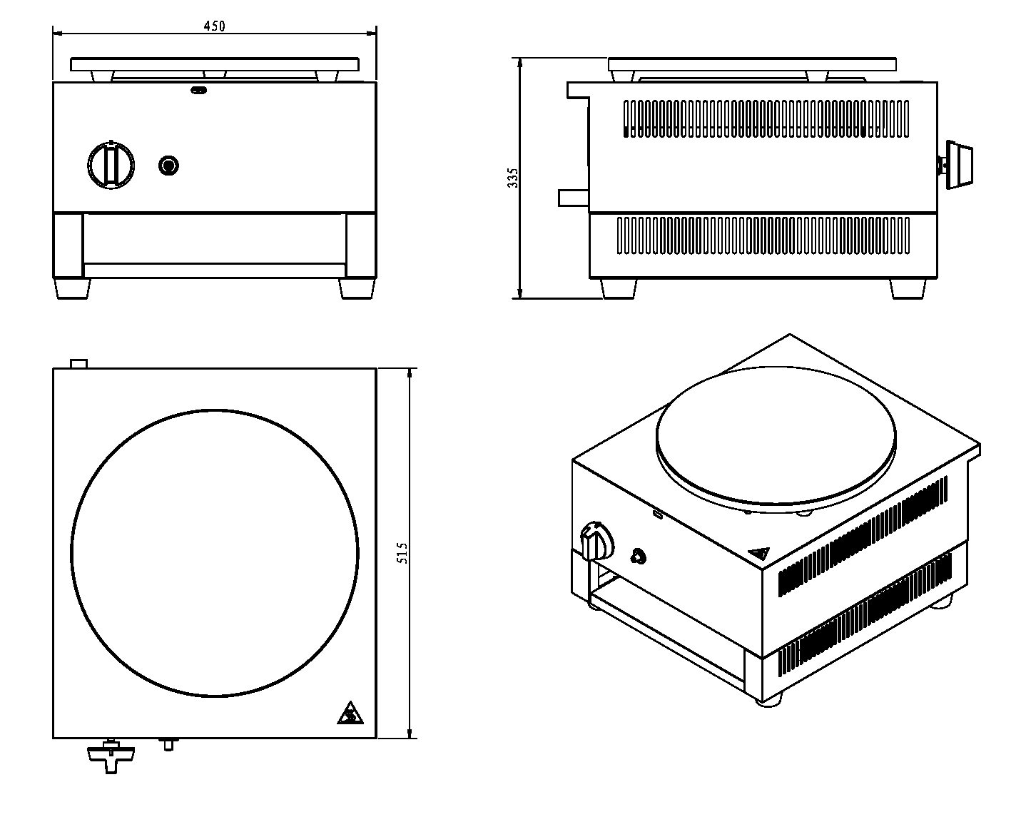 The Infernus Single Gas Crepe Maker is a high-performance solution for professional kitchens, dessert parlors, and mobile catering units. Constructed with a robust stainless steel body, it features a heavy-duty cast iron plate with a Teflon coating to ensure non-stick cooking and effortless crepe release. Its high-efficiency 5.2kW burner provides rapid heating for fast-paced service environments.